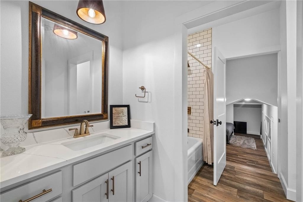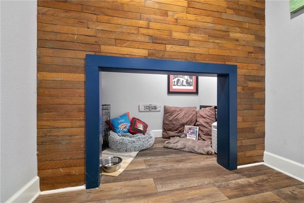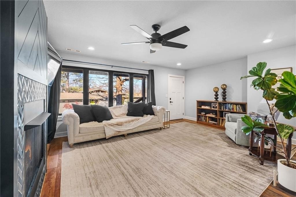 Gorgeous, breathtaking views greet you daily from the 500 SF rooftop deck, complete with a wood-burning fireplace and sweeping sunset views across Fayetteville-an exceptional space for entertaining or unwinding. Inside, the living area centers around a fireplace, with natural light pouring through a wall of windows. The reimagined kitchen, thoughtfully designed within the home's original footprint, flows seamlessly and is ideal for any cook. A custom-built nook, perfect for pets or kids, showcases repurposed original flooring as a unique architectural accent. Main level features a private primary wing with western views, two walk-in closets, dual vanities, integrated laundry, and tiled walk-in shower. A second bedroom or office and an additional full bath complete the level. Upstairs, a light-filled landing with kitchenette connects two bedrooms and a full bath with original 1935 cast-iron tub and bonus space adds flexibility. The backyard preserves the stone foundation of the original homestead and a 2 car garage.